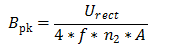 N2是二次侧绕组,A是磁芯材料有效磁剖面,f=1/T是感应电压的频率,Bpk是完全确定的,取决于信号形状。